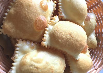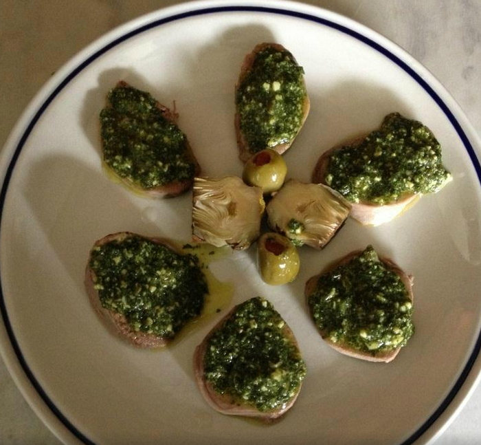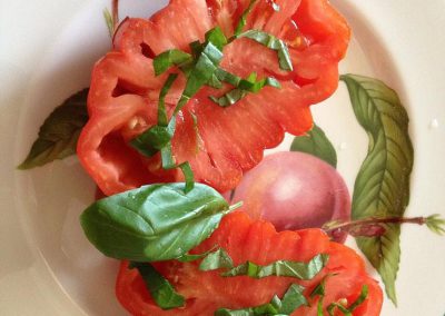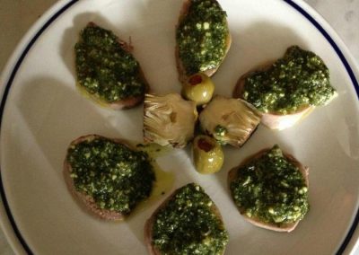 Per Pranzo Sano possiamo offrire antipasti sfiziosi a base di crostoni di pomodori, bruschette al pesto di rucola, il tutto accompagnato dalle nostre focaccine locali