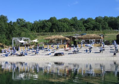 La spiaggia è aperta tutti i giorni dalle ore 9:00, con noleggio di ombrelloni, lettini, sdraio, pedalò. Uso gratuito di spogliatoi e docce.