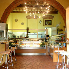 Munito di vetrine luminose e saletta interna con 40 posti a sedere.