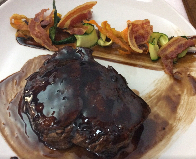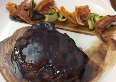 Carni alla brace con contorni di insalate o patate arrosto (tagliata ai funghi porcini)