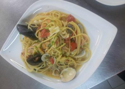 Il nostro menù predilige pietanze a base di pesce. Gusterete piatti fantasiosi e dolci di nostra produzione, il tutto accompagnato dagli ottimi vini della nostra cantina.