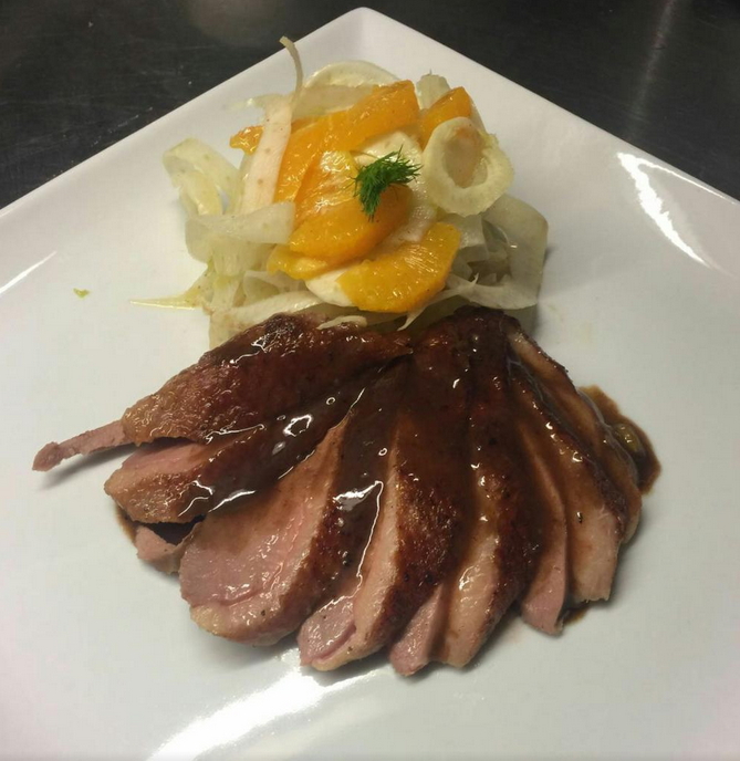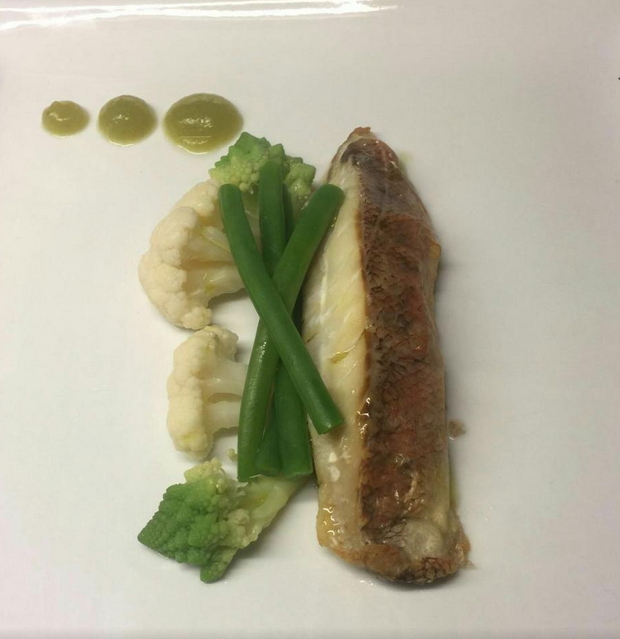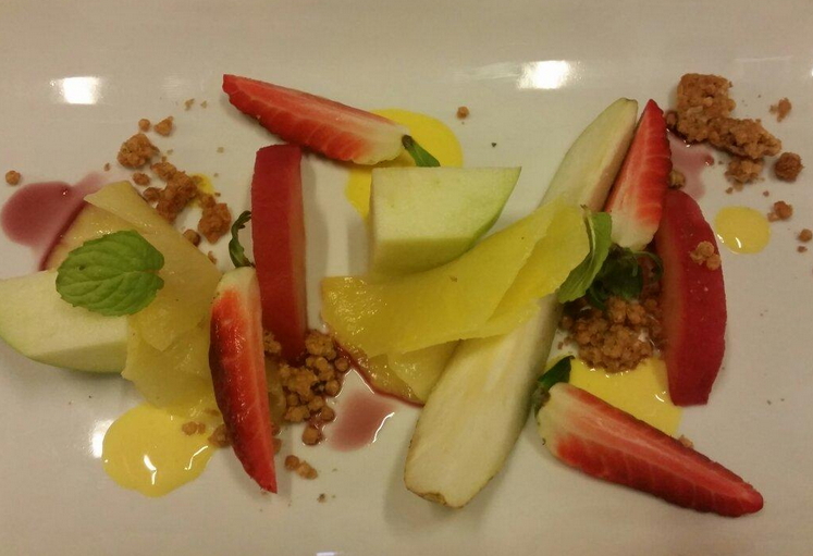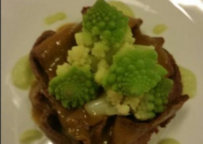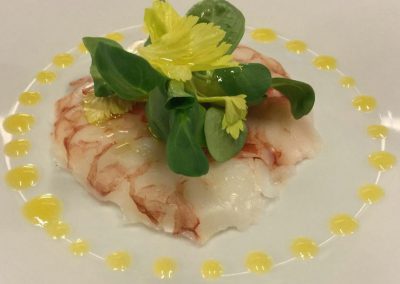 Seppia, sedano croccante, pomodoro fresco, olive e caviale di salmone