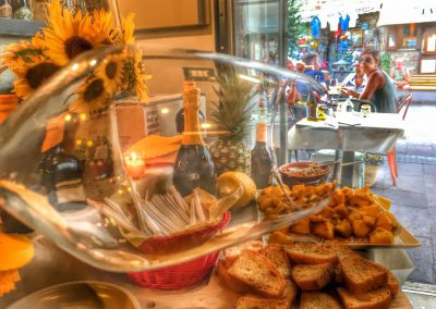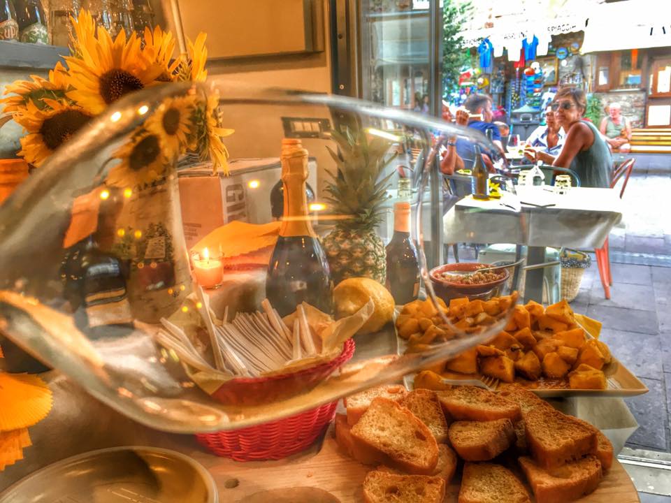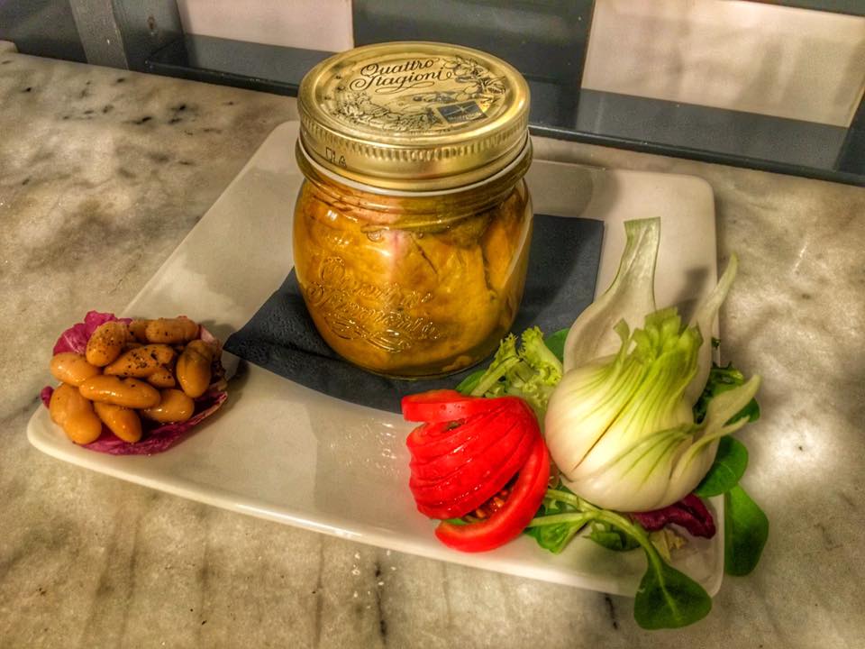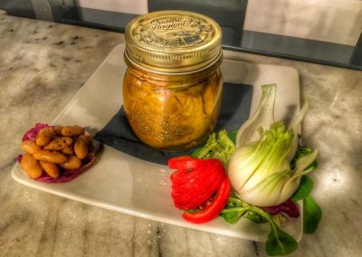 pappa al pomodoro con dei totani, passatina di patate con pesto alle olive e pesce, tagliere di salumi di pesce (fatti in casa nostra!)