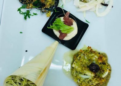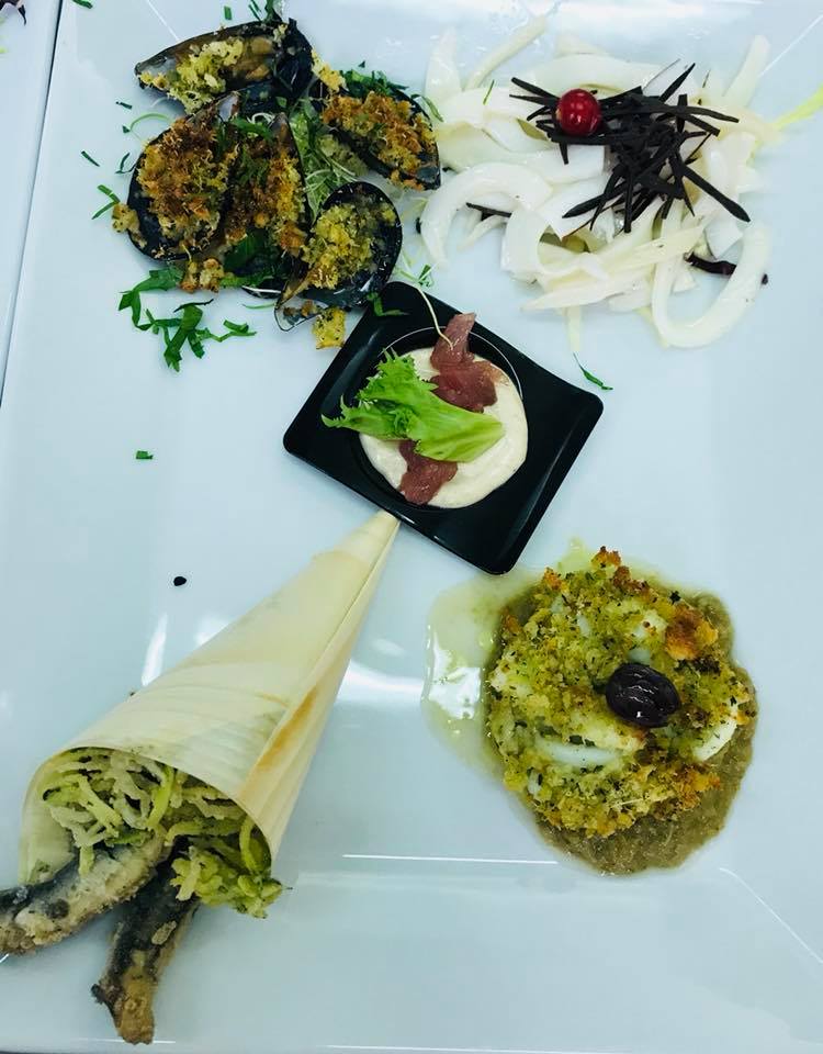 PROSCIUTTO E MELONE – BRESAOLA E RUCOLA – BRUSCHETTE MISTE (olio extravergine di oliva, aglio, pomodoro, verdure in base alla stagionalità) – INSALATA DI MARE TORRIONE – CARPACCIO SINGOLO DI PESCE FRESCO – MAREA (insalata di mare, sauté di cozze, salmone marinato, polipetti al pomodoro)