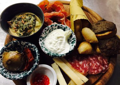 Un trionfo di profumi e di sapori, generato dalla frangranza e genuinità degli ingredienti. Antipasti stuzzicanti, fatti con prodotti tipici selezionati di alta qualità e pieni di gusto.