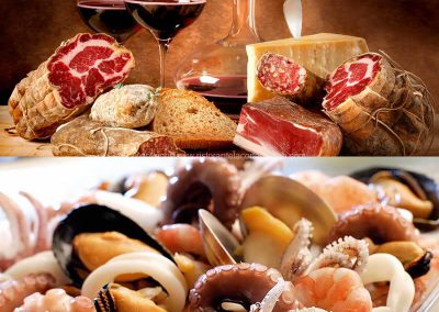 La cucina del ristorante spazia dalle specialità di terra alle prelibatezze di pesce del vicino mare della Versilia.
