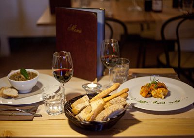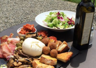 I piatti sono accompagnati da un’ottima selezione di vini e olio toscani.