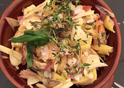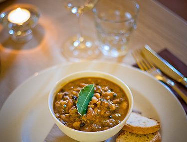 Il menu segue l’andamento stagionale, in quanto la maggior parte dei prodotti proviene dall’orto biologico della Tenuta.
