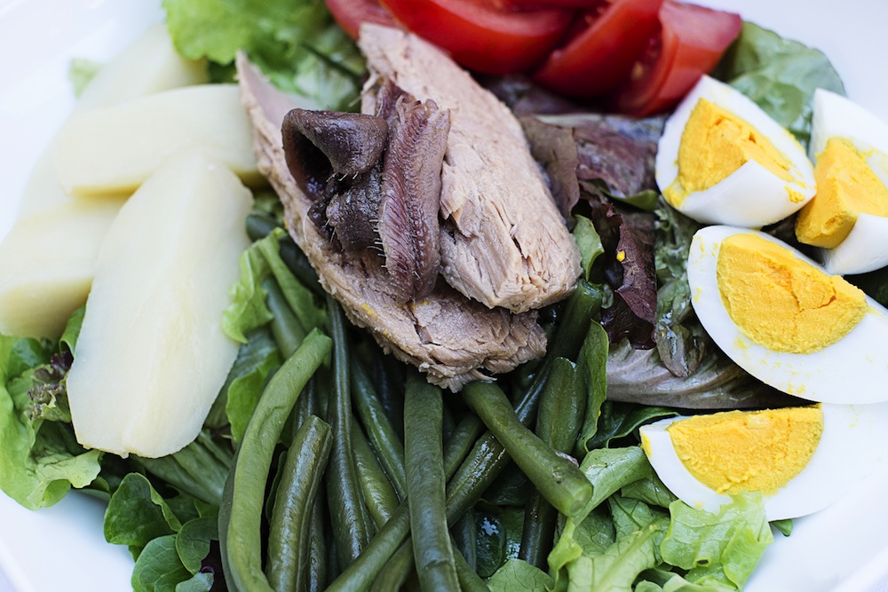 NICOISE fagiolini, patate, pomodori, uova, acciughe e tonno