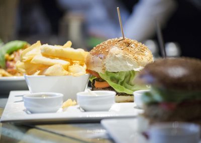 CHEESEBURGER DI MANZO 13 € con lattuga, pomodoro, formaggio, cetriolini, cipolle di tropea e patate fritte