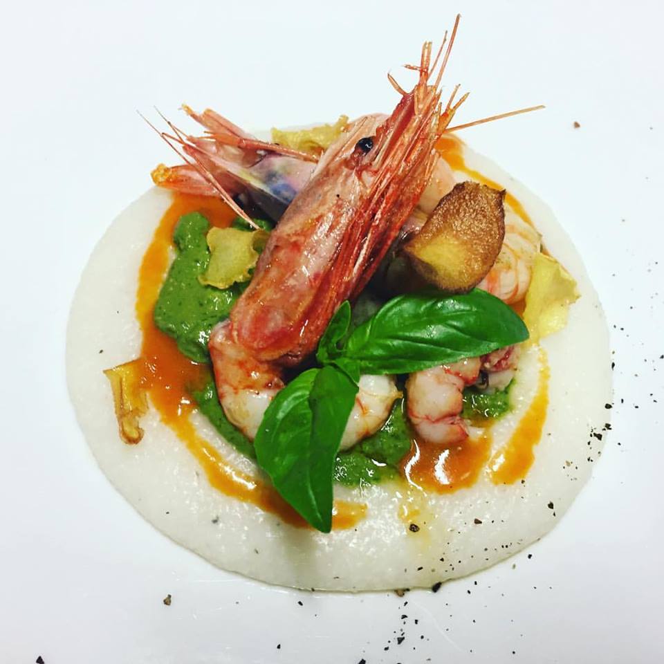 Baccalà mantecato con fiori di zucca e vellutata di ceci