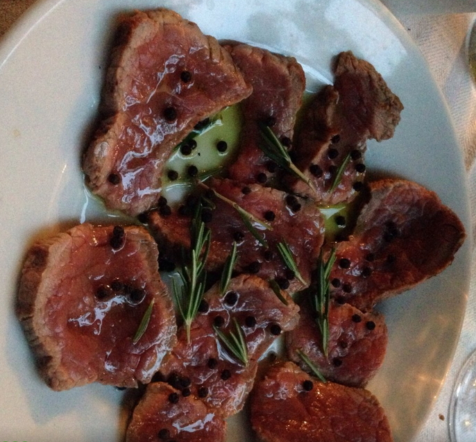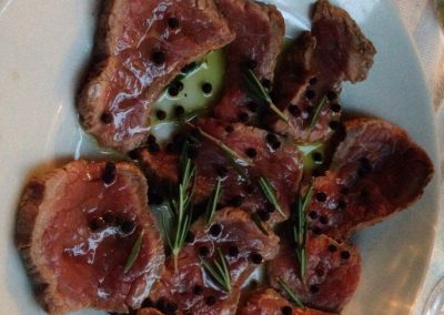 Tagliata di fassona al rosmarino oppure coniglio alla provenzale.