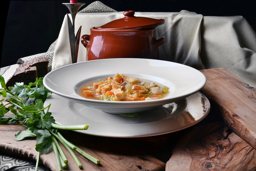 Menù 1 – Tortelli di pappa al pomodoro conditi con olio evo, basilico e pinoli, Trancio di chianina con insalata spontanea o fagioli “piattelli”;