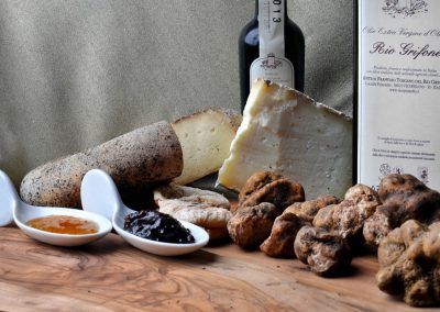 PRODOTTI DOP/IGP/TRADIZIONALI/BIOLOGICI UTILIZZATI – PRODUTTORI /FORNITORI: ceci bio – FloriddiaAz. e Az. Strizzasemi, Fagiolo Rosso di Lucca  – l’Unitaria Pres. S.F., Fagioli di Sorana – Az. enrico Gaggini Pres. S.F., Olio Bio Riogrifone – Antico Frantoio Riogrifone di Vicopisano (PI), Olio privilegio IGP Consorzio Produttori Colline di Pisa, Olio Incontri Veganok – Az. Agricola Incontri  (Suvereto), Mortadella di Prato – Macelleria Marnori (PO), Biroldo della Garfagnana – Antica  Norcineria Bellandi, Mallegato Pisano – macelleria Ceccotti e Macelleria Falaschi, Pecorino a latte crudo delle Montagne Pistoiesi- Giusti (Pescia), Vino Bio- Az. Podere Spazzavento Ponsacco, Vini Bio Fontodi, Vini e Bio e Vegani Az. Agricola Incontri (Suvereto)