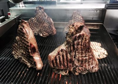 Si possono trovare i piatti tipici dell’antica cucina Toscana, la pasta fresca fatta in casa, la vera bistecca alla Fiorentina rigorosamente cotta alla brace e tanti altri piatti, oltre alla pizza cotta a legna (che possono essere anche a base di farina integrale, farina di farro, farina di kamut, farina di riso).