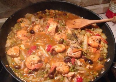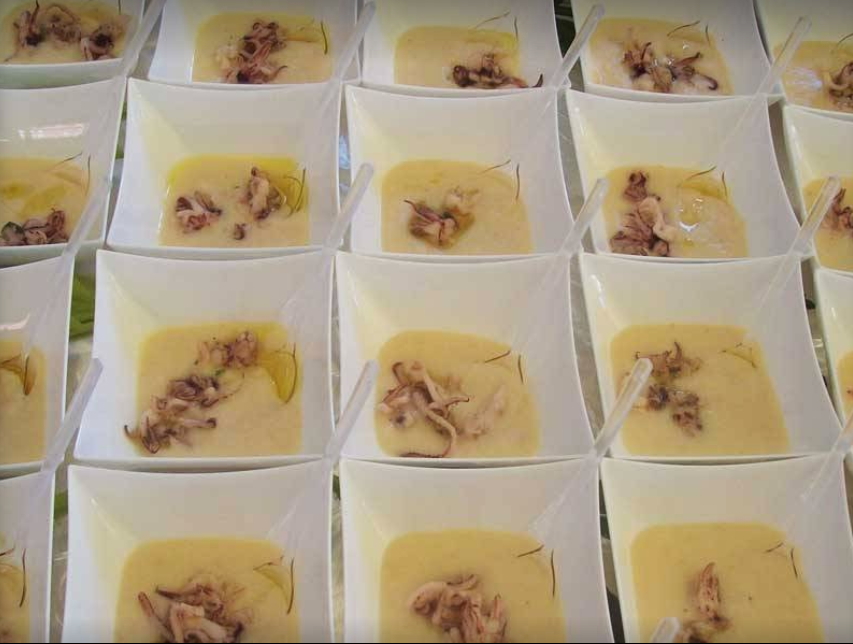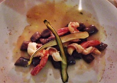 Ravioli di branzino in salsa di scampi e zucchine, spaghetti allo scoglio oppure risotto al curry