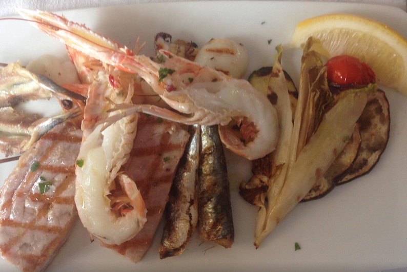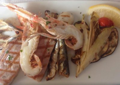 Perle del Golfo alla Griglia (calamari, seppie, pesce azzurro) accompagnate da patate o verdure al forno