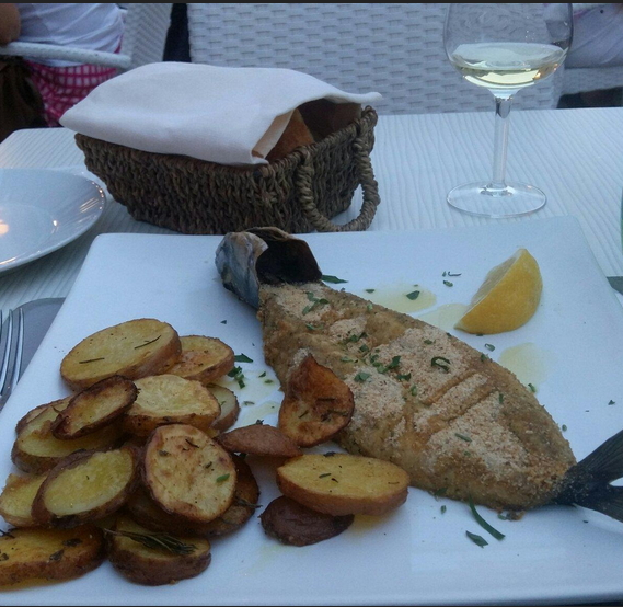 Pesce bianco alla griglia con verdure e patate al forno oppure orata al forno
