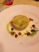 Flan di carciofi tiepido su vellutata di patate e olio al tartufo marzolino
