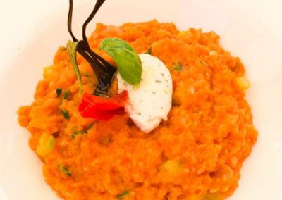 Risotto Carnaroli e verdure primaverili con olio ghiacciato alle erbe (tempo di preparazione 12 minuti)