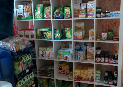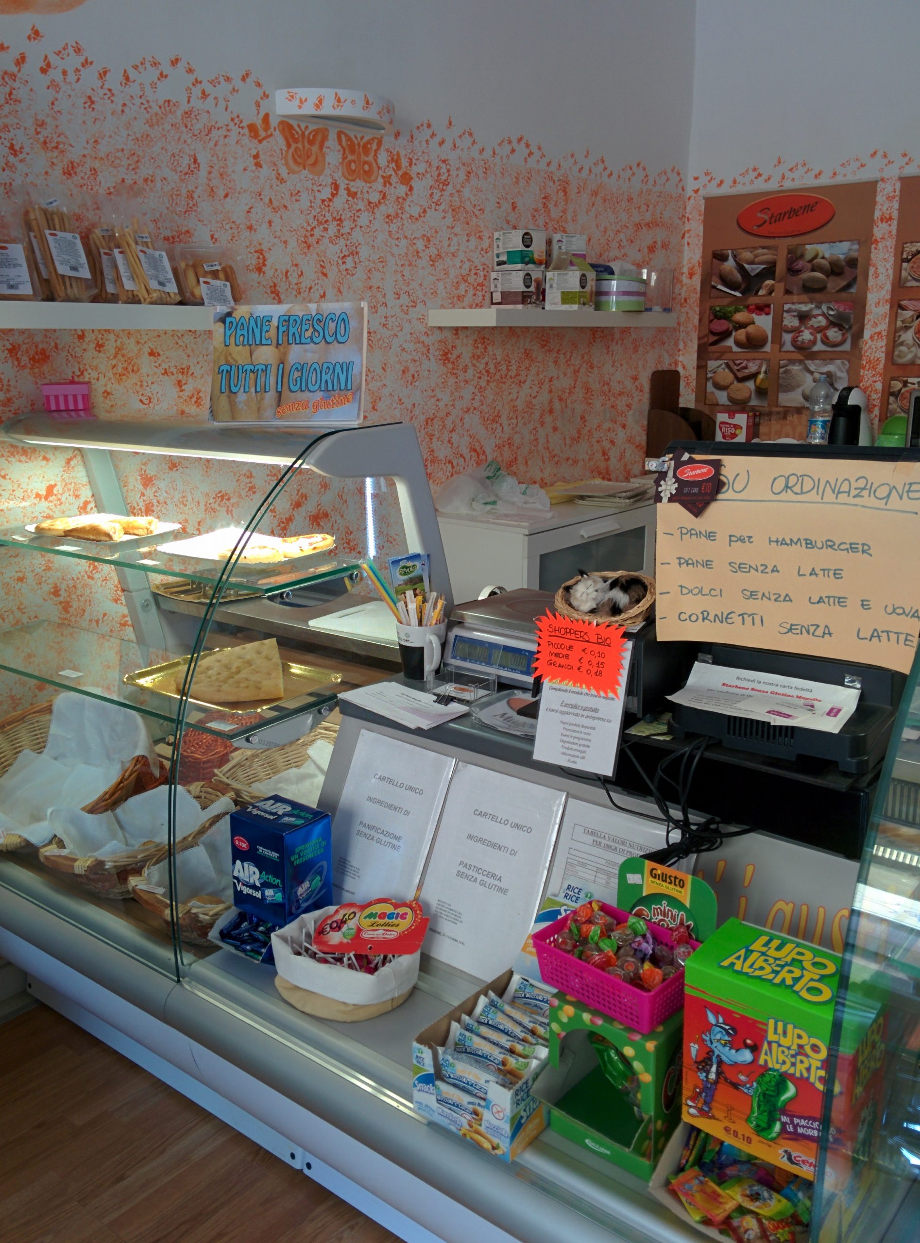 All’interno del negozio si possono trovare anche prodotti senza latte, uova, zucchero, olio di palma, lievito, mais e riso.