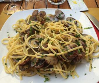 Linguine aglio, olio, peperoncino con acciughe del mar Cantabrico