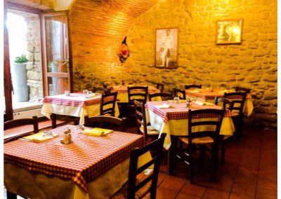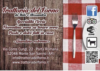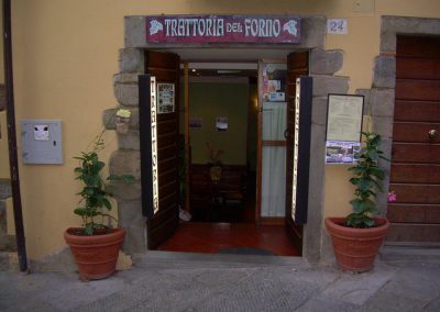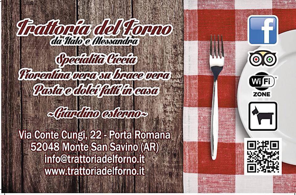 Ristorante caratteristico situato nel centro storico di monte san savino, il locale che fino alla fine degli anni ’70 ospitava il “Forno” del paese è diviso in due livelli: il piano inferiore è caratterizzato da un soffitto fatto a volta a botte di mattoni risalente ai primi del ‘500; nel periodo estivo è possibile pranzare nello spazio interno ricavato nell’antico camminamento medioevale del centro storico fortificato.