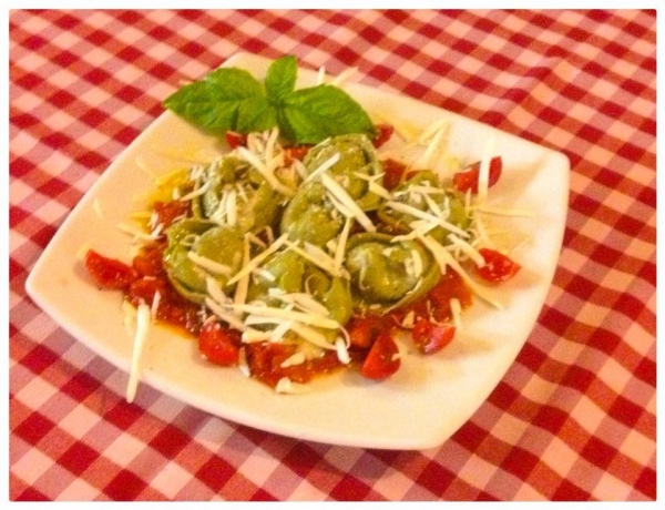 Tortelli del Casentino con Porri e scaglie di grana padano