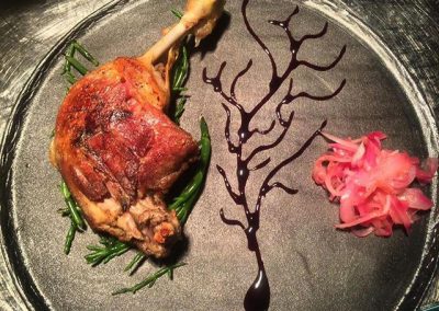 Coscia anatra mulard in confit aromatizzata al timo e aglio dolce