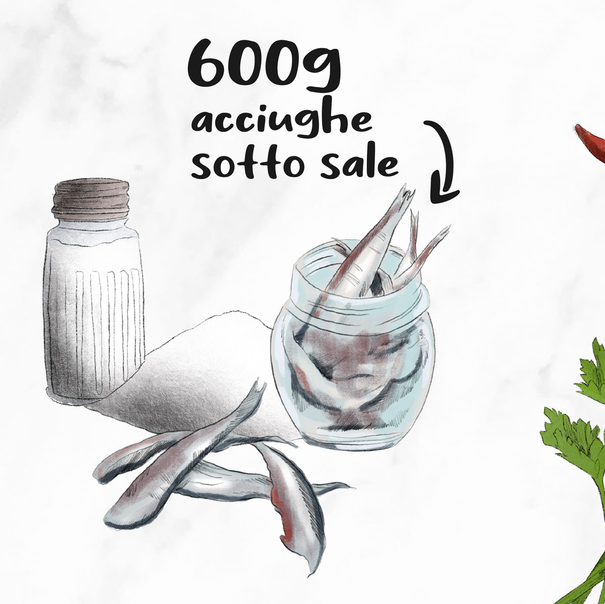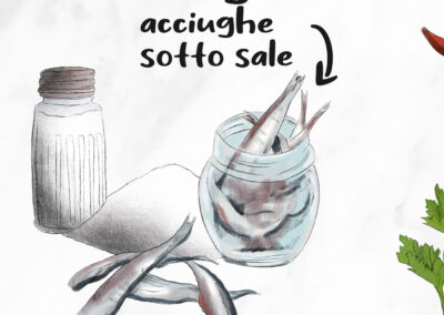 Trascorso il tempo di riposo delle acciughe toglierle dall’acqua e diliscarle sciacquandole. A mano a mano che sono pronte asciugarle per togliere l’acqua rimasta in eccesso.