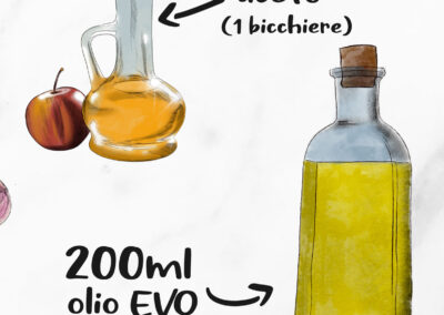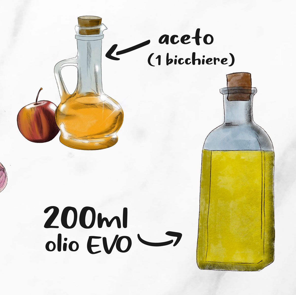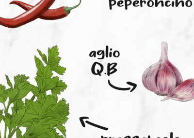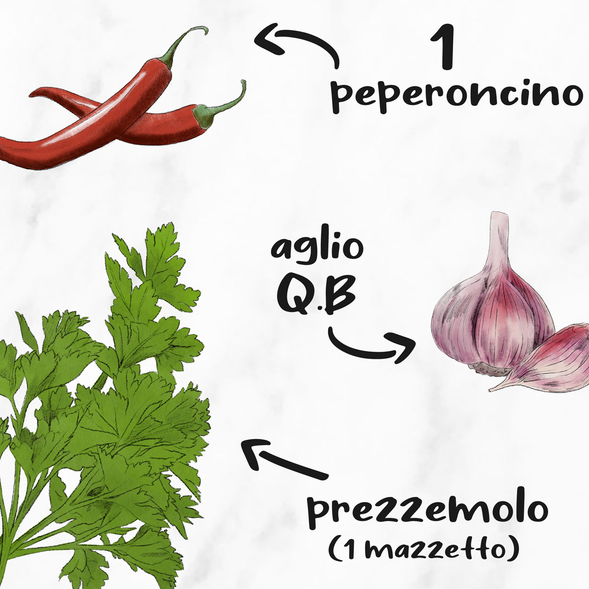 Sbucciare gli spicchi d’aglio e preparare un trito con aglio (in quantità a piacere), prezzemolo e, se piace, il peperoncino. Tritare rigorosamente a coltello o con la mezzaluna. Mettere il trito ottenuto in una terrina e diluirlo con l’olio in modo da ottenere una salsa fluida.