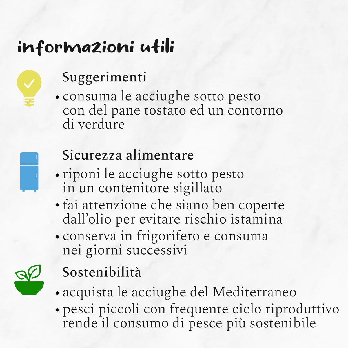 Chiudere la terrina e conservarla in frigo per almeno un giorno prima di consumare le acciughe sotto pesto.
