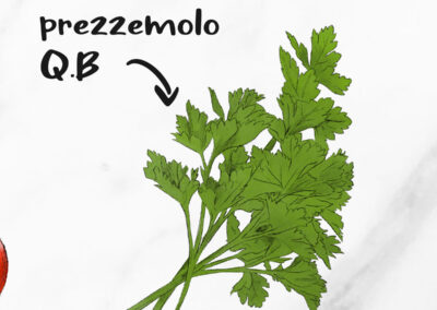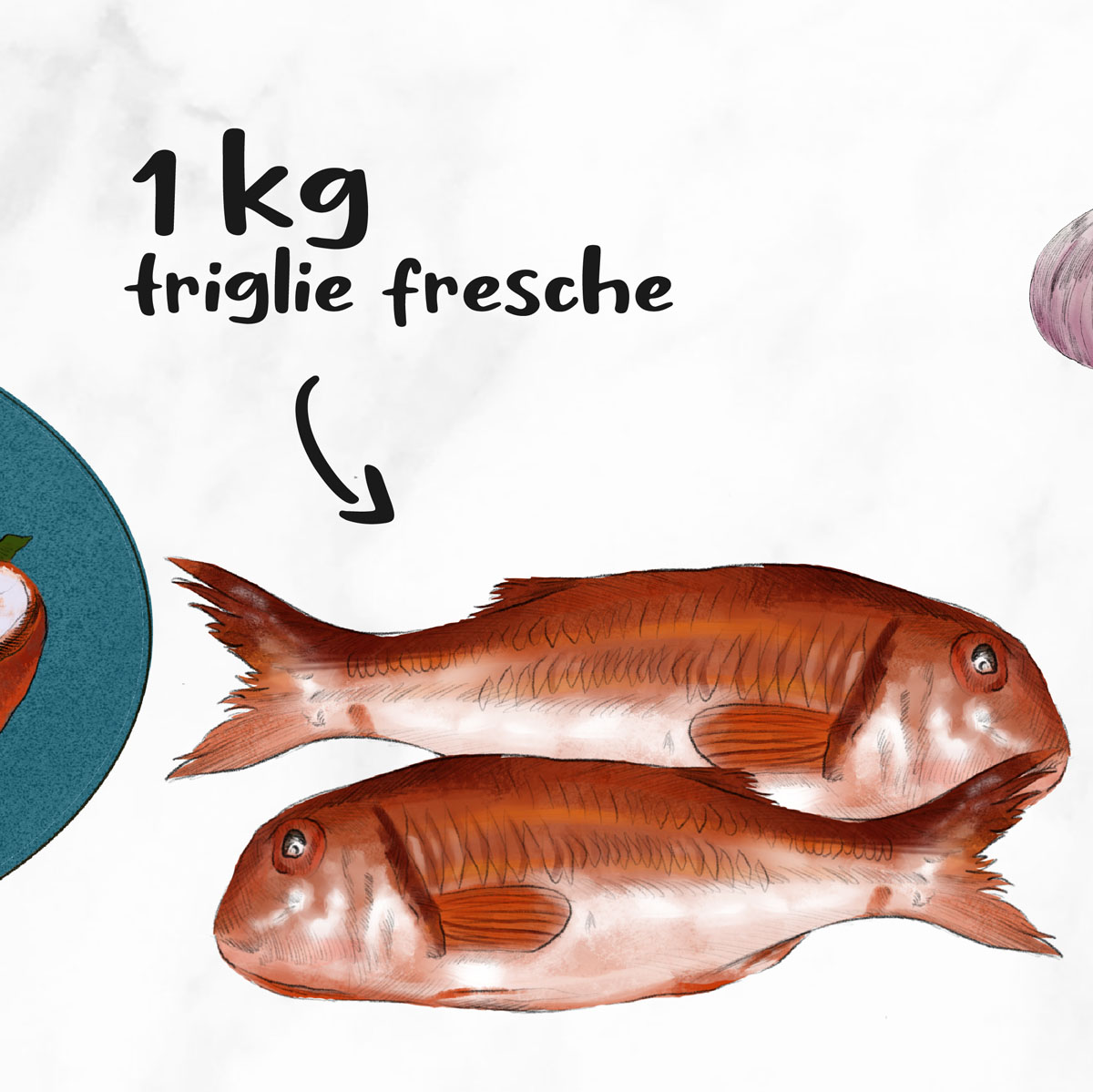 Pulire le triglie togliendo le pinne, ma non la coda. Squamare il pesce e lavarlo sotto acqua corrente. Alla fine asciugarlo bene. Aggiungere l’olio in un tegame (dimensioni sufficienti a contenere le triglie senza sovrapporle) e farlo rosolare con l’aglio ed una parte di prezzemolo tritato finemente.